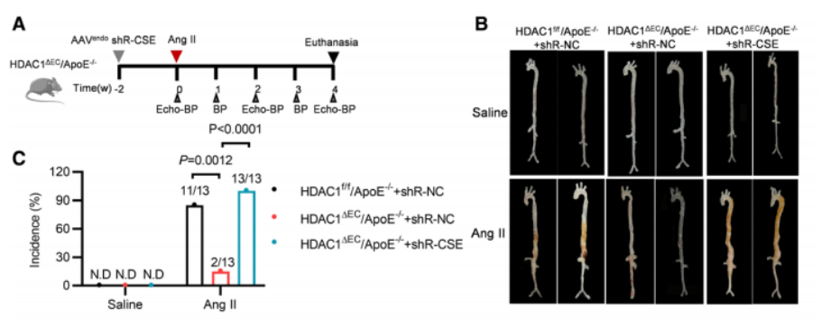 2. EC特异性CSE敲除加重小鼠Ang II诱导的AAD